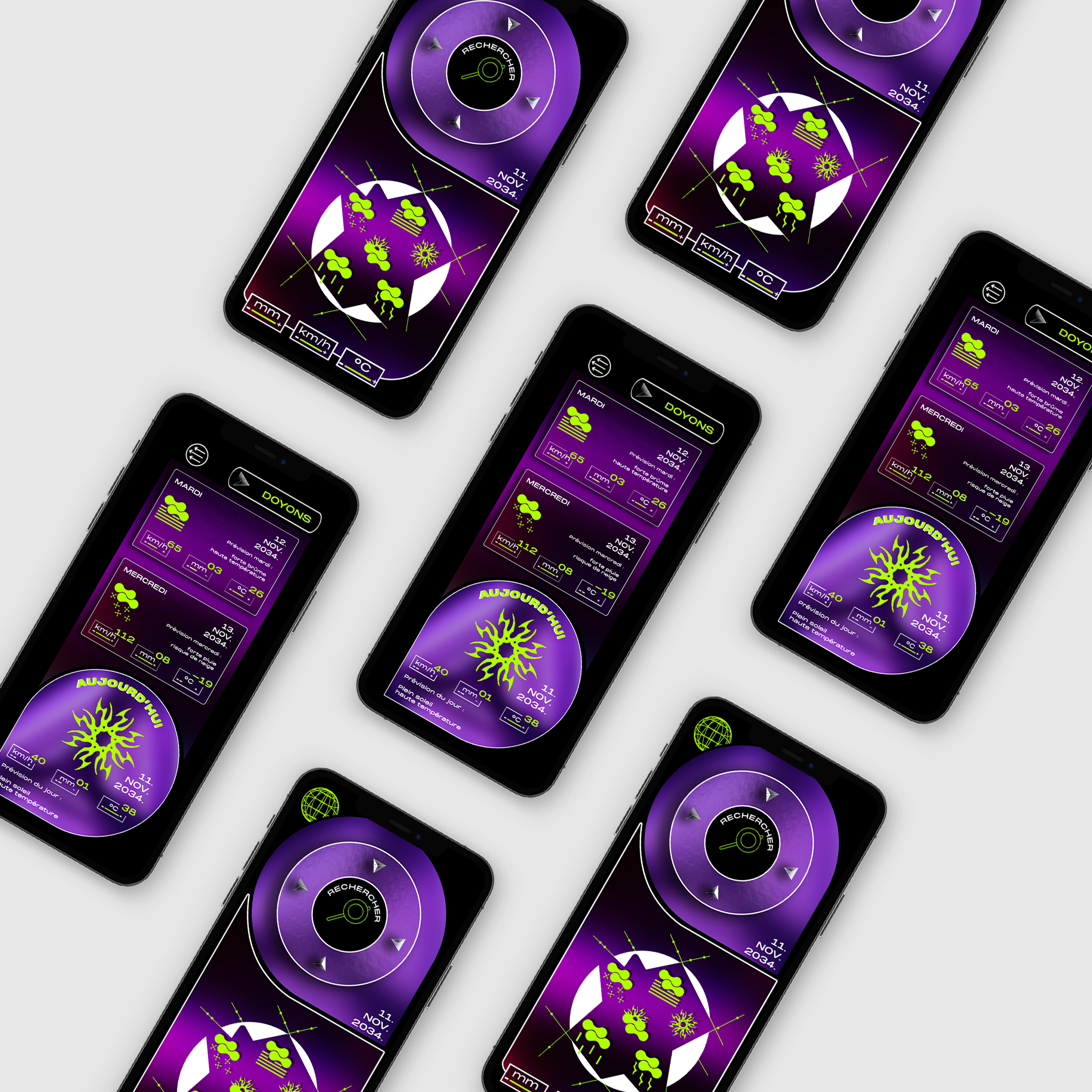 Afin de différencier cette interface des autres déjà existante, je me suis inspiré de couleurs et de modules futuristes permettant un imbriquement singulier. De plus, la présence du “Glassmorphism” renforce cet aspect futuriste.